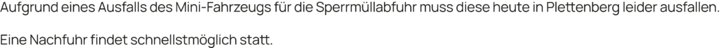 Keine Sperrmüllabfuhr in Mini-Revieren heute in Plettenbergimage-17